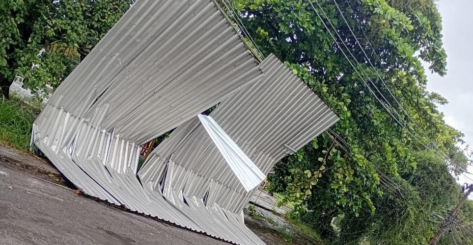 Telhado voa durante chuva no Jardim Tiradentes, em Volta Redonda