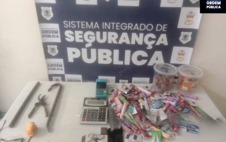 Durante o arrombamento ao quiosque, o bando utilizou uma pedra grande, chegando a danificar uma porta de enrolar de aço. O casal foi conduzido à delegacia de polícia, onde foi preso em flagrante. Com eles, foram apreendidos diversos materiais, como máquina de cartão, celular, calculadora, pé de cabra, alicate e barra de ferro, além de produtos como doces e chicletes de diferentes marcas.
