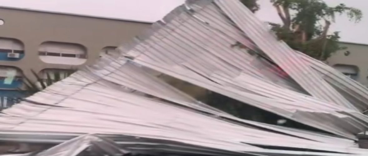 Vídeo: ventania arranca telhado de Ciep na Volta Grande