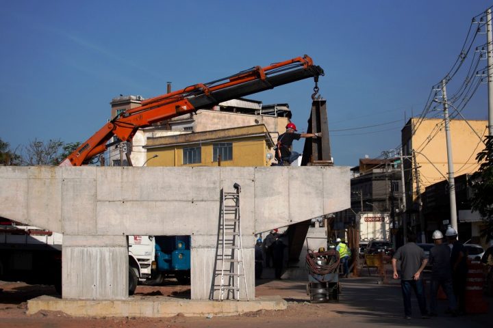 As obras do viaduto que vai facilitar o trânsito entre os bairros Voldac e Niterói, em Volta Redonda, entraram em nova etapa nessa quinta-feira (6), quando começaram a ser içadas nas proximidades do Batalhão da Polícia Militar, no Voldac, as primeiras cinco vigas da estrutura, que integra o Plano de Mobilidade Urbana do município. A previsão é que o serviço seja concluído até este sábado (8), e, em seguida, a empreiteira responsável pela obra – a Santa Luzia – deve começar a construir as paredes laterais da parte do viaduto em que as vigas foram acondicionadas.