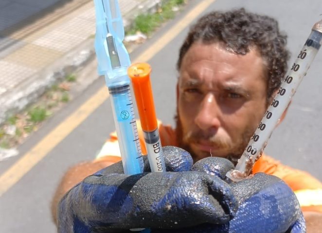 Descarte correto – Com o objetivo de evitar novos acidentes, o projeto de conscientização busca educar a população sobre como realizar o descarte correto desses materiais. “Agulhas e seringas, por exemplo, devem ser acondicionadas de forma segura, como em garrafas PET, e entregues nas unidades de saúde. Isso pode prevenir lesões graves nos trabalhadores da limpeza urbana e garantir um descarte mais responsável”, explica Carlos Amaro.