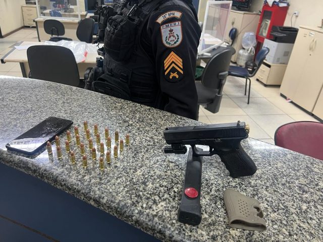 Durante a ação, a PM apreendeu uma pistola de numeração suprimida com kit rajada, um carregador alongado, 25 munições, uma mira a laser e um celular. O suspeito e o material foram levados para a delegacia, onde o caso foi registrado. Também no sábado, outros três suspeitos foram detidos no sábado por tráfico de drogas no bairro Belmonte.